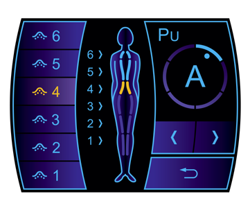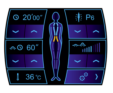 Das Gerät verfügt über einstellbare Einstellungen für die Gesamtbehandlungsdauer, die Stufenlänge und die Aktivierung der sechs Massagezonen. Darüber hinaus ist die Wassertemperatur einstellbar und wird während der gesamten Behandlung konstant gehalten, um optimalen Komfort zu gewährleisten.