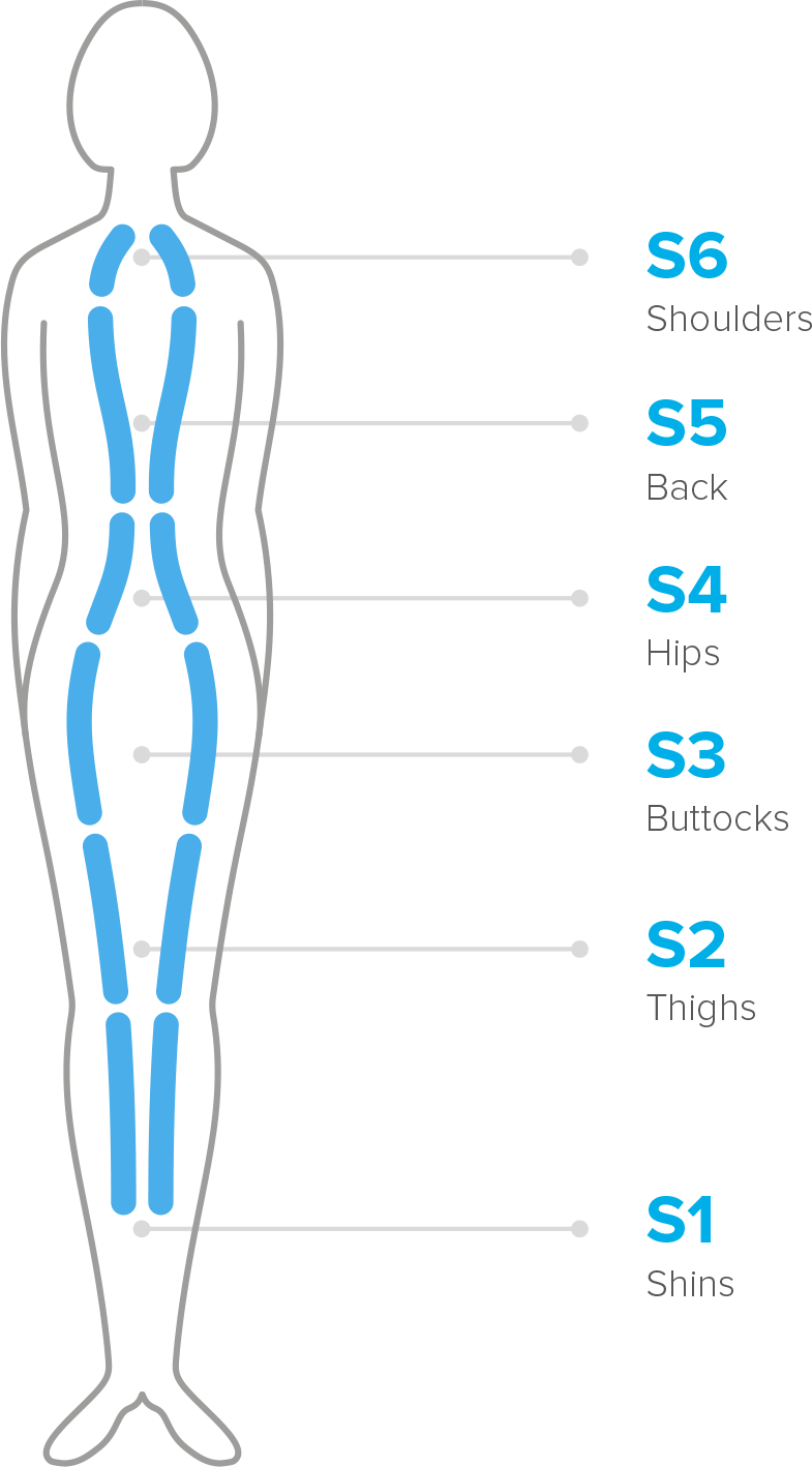 Jetzt können Sie selbst entscheiden, welcher Körperteil massiert werden soll. Programmieren Sie ganz einfach jede der 6 völlig unabhängig arbeitenden Zonen für bessere Behandlungsergebnisse. Ganzkörper-Hydromassage zur Tiefenentspannung, Schultern zur Linderung von Nackenschmerzen, Oberschenkel und Schienbeine zur Verbesserung der Beweglichkeit.