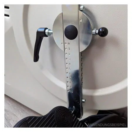 Ist der Patient aufgrund einer Verletzung oder Operation nicht in der Lage dieses Bewegungsausmaß auszuführen, sind aus therapeutischer Sicht diese hohen Beugewinkel nicht sinnvoll. Die verstellbaren Ergo-Fit Pedalarme erlauben die individuelle Einstellung des Bewegungsradius der Tretbewegung. Dies ermöglicht das Training in einer frühen Phase der Rehabilitation. Zahlenmarkierungen erleichtern das Wiederfinden der Trainingsposition. Verstellung ohne Werkzeug möglich.
