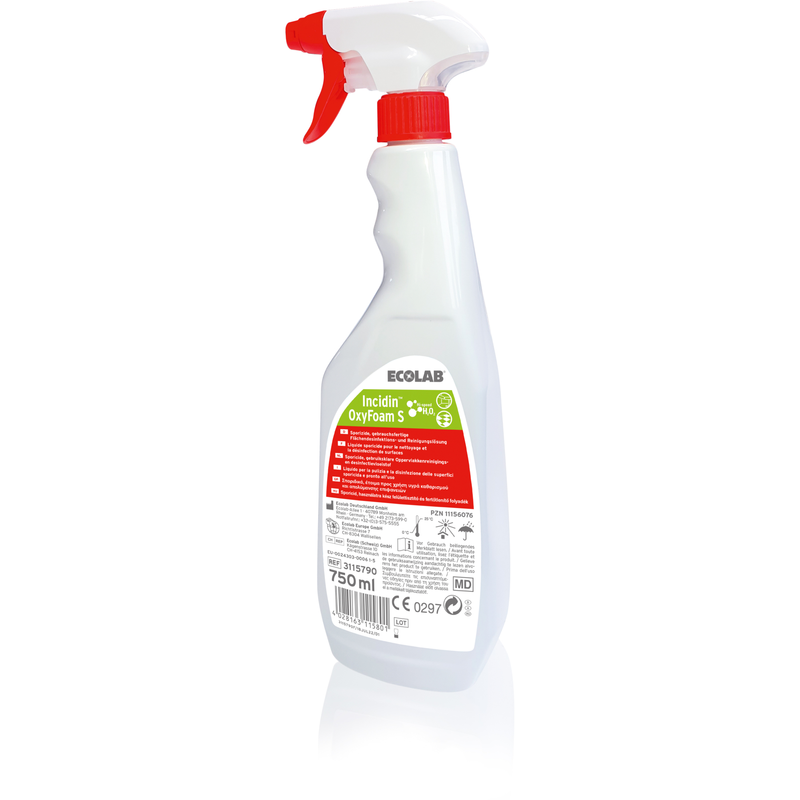 Das ECOLAB Incidin OxyFoam S Reinigungs- und Desinfektionsspray ist eine gebrauchsfertige, sporizide** Reinigungs- und Desinfektionslösung mit einer patentierten* Wasserstoffperoxid-Lösung mit breitem Wirkspektrum. Es wirkt gegen ein breites Spektrum an Krankheitserregern und hinterlässt dank des aktiven Wirkstoffes, der sich in Wasser und Sauerstoff auflöst, keine aktiven Rückstände. Dank der ausgezeichneten Materialverträglichkeit kann das Produkt für die meisten medizinischen Oberflächen im Gesundheitswesen verwendet werden. Durch die bequeme Sprayform ist es dazu äußerst benutzerfreundlich.