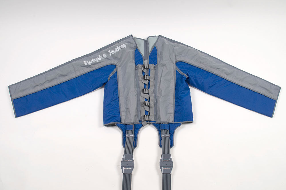 Die neue Lympha Jacket hat 24 überlappende Luftkammern, ist größenverstellbar und lässt sich zusätzlich im Rücken, im Brustbereich und an den Armen durch Expander erweitern.