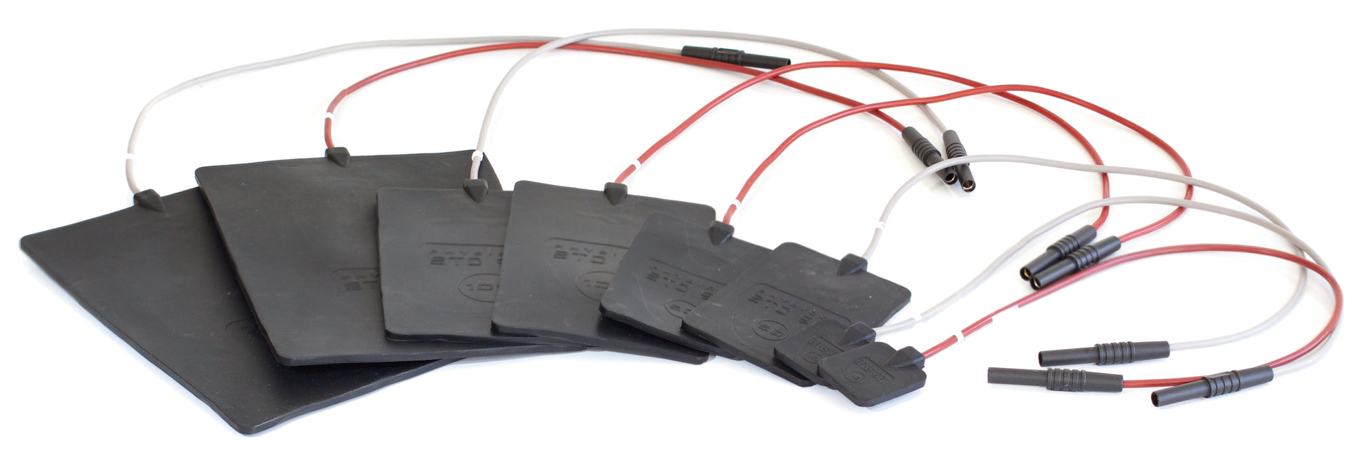 Die Plattenelektroden des STC 911/ 901 sind in 3-Schicht-Technik gefertigt. Mit dieser Technologie wird die größtmögliche homogene Stromdichte über die gesamte Plattenelektrodenfläche erreicht. Für das schnelle und sichere Anschließen des Platten-elektrodenkabels an das Patientenkabel des Physicom STC 911 wird das Elektrodenkabel mit einem Sicherheitsstecker an das Patientenkabel angeschlossen. Dieses Patientenkabel ist mit einer CinchSpezialsteckerbuchse - vergoldet - für Ihr Physicom STC 911/ 901 ausgestattet.