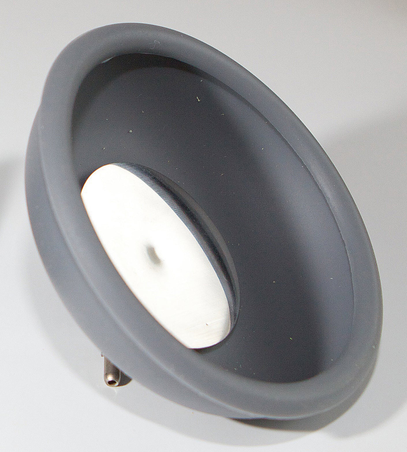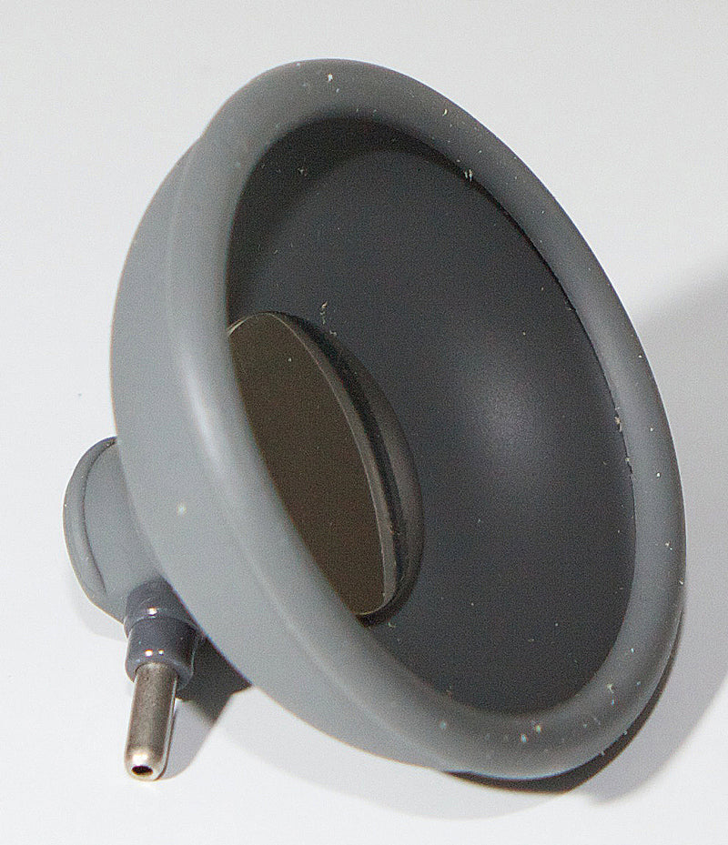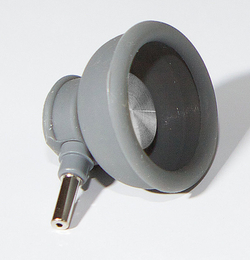 Die Standardgröße hat einen Durchmesser von 6.5 cm. Für erweiterte Aufgabenstellungen stehen Ihnen Vakuumelektroden in den Größen Durchmesser 3,0 cm und Durchmesser 9,5 cm zur Verfügung. Stecken Sie diese Vakuumelektroden auf die Vakuumkabel auf, die Sie an die vergoldeten Vakuumanschlussbuchsen des Therapiegerätes für den VakuumTherapiekanal A oder B angeschlossen haben.